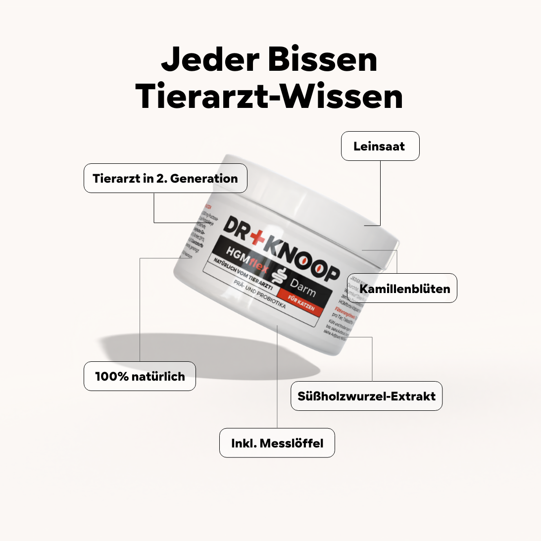 Fütterungsempfehlung: Täglich 1 Messlöffel je 5 kg KGW, 1 Messlöffel = 1 g
