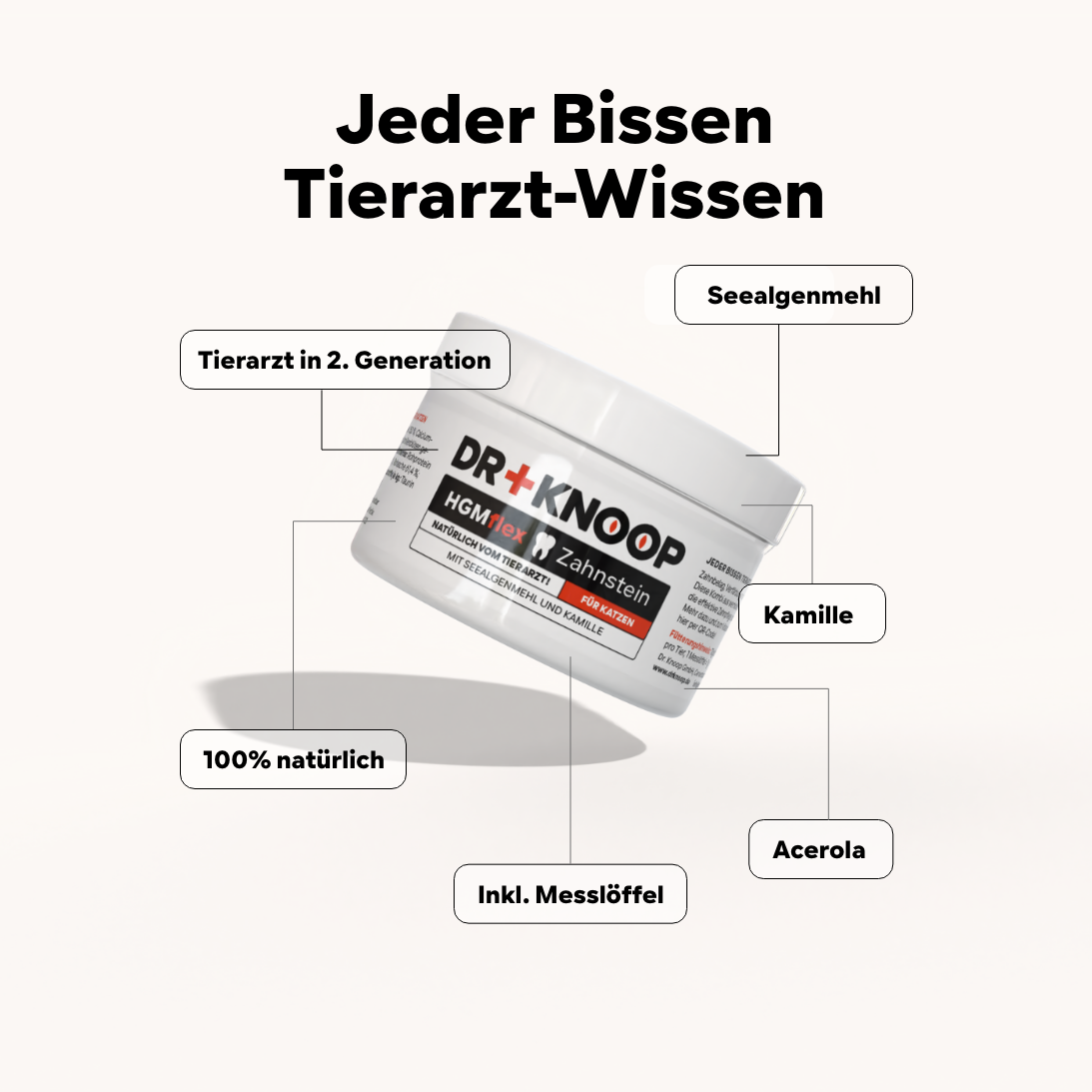 Katzen regelmäßig die Zähne putzen zu wollen, ist aussichtslos. Daher haben wir ein Zahnputzpulver entwickelt, das sich einfach über das Futter streuen lässt und dabei hilft, den Zahnstein zu verringern.